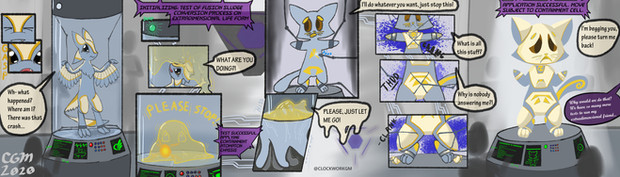 The internship at the previously-unknown pokemon research facility isn't working out so well for them. They probably should have just left when they saw that Rocket uniform hanging in the closet.Art by