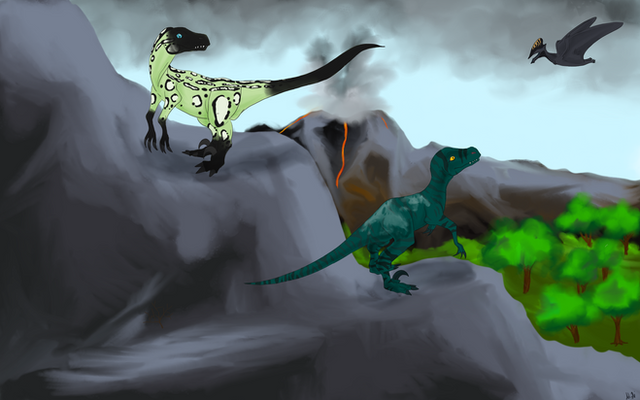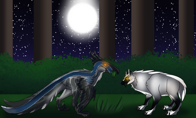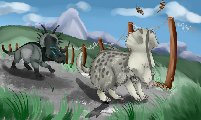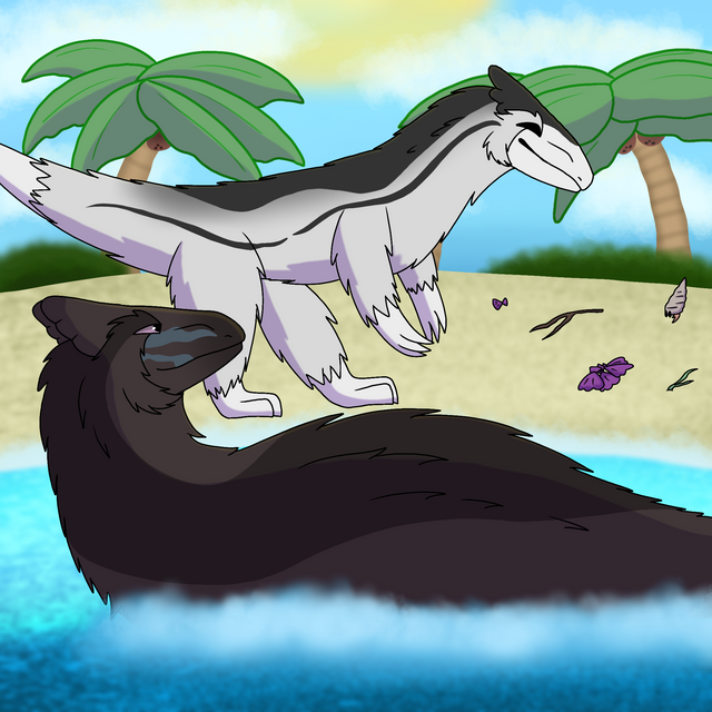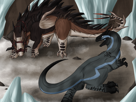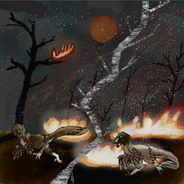 Final age up for Glacier! This one references the fire that burned down Nebula’s forest territory: www.deviantart.com/clockworkja…A travelling Glacier also got caught up in it, and surprisingly, the carnivore came to her rescue to help her escape. Nebula now sees her as a friend and won’t harm her.