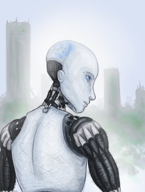 Après avoir étudié de nombreuses Annonciations en tout genre, le thème me trottait dans la tête.Il y a percuté d'autres influences, qui ont transformées le traditionnel Jardin Clos en forêt nordique, avec une architecture moderne, voire futuriste. Le projet est né, et voici une première étude d'un des personnages principaux, l'archange Gabriel.