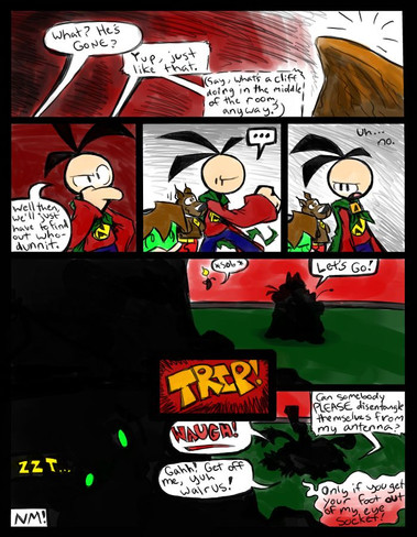 Here we go! I'm back from vacation and raced against time to bring the next chapter of CWT to you guys.Oy... Mrs. Candle screws up again, this time it looks like it's very much to the Clockwork Toast team's disadvantage... The Radioactive Jellybean monster has manifested from the Boss Fight missile and seems a bit too unfriendly for everyone's liking. Of course, Doccy can be trusted to look out for his own interests and take off.