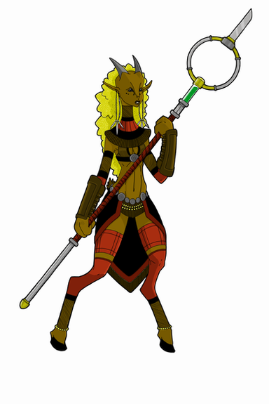 About: Nyl is the current high-priestess of the StarFishers and has been reigning high priestess for 3 terms (9 years). A powerful caster and fighter, not much is known about her youth but her rise to power has been a source of admiration for many a StarFisher as she mixes both level-headed composure with complete stone cold savagery. The title of high priestess is a female only title, one which a few fishers claimed Nyl did not technically qualify for as she began ascending the ranks, but the claims quickly diminished as Nyl started personally silencing them herself in the most lethal of fashion. During her second terms' challenge, her rival for the title tried to get the upper hand by using a device they had stolen from a shooter ship. Instead the device malfunctioned, only destroying Nyl's leg and killing some of the audience.