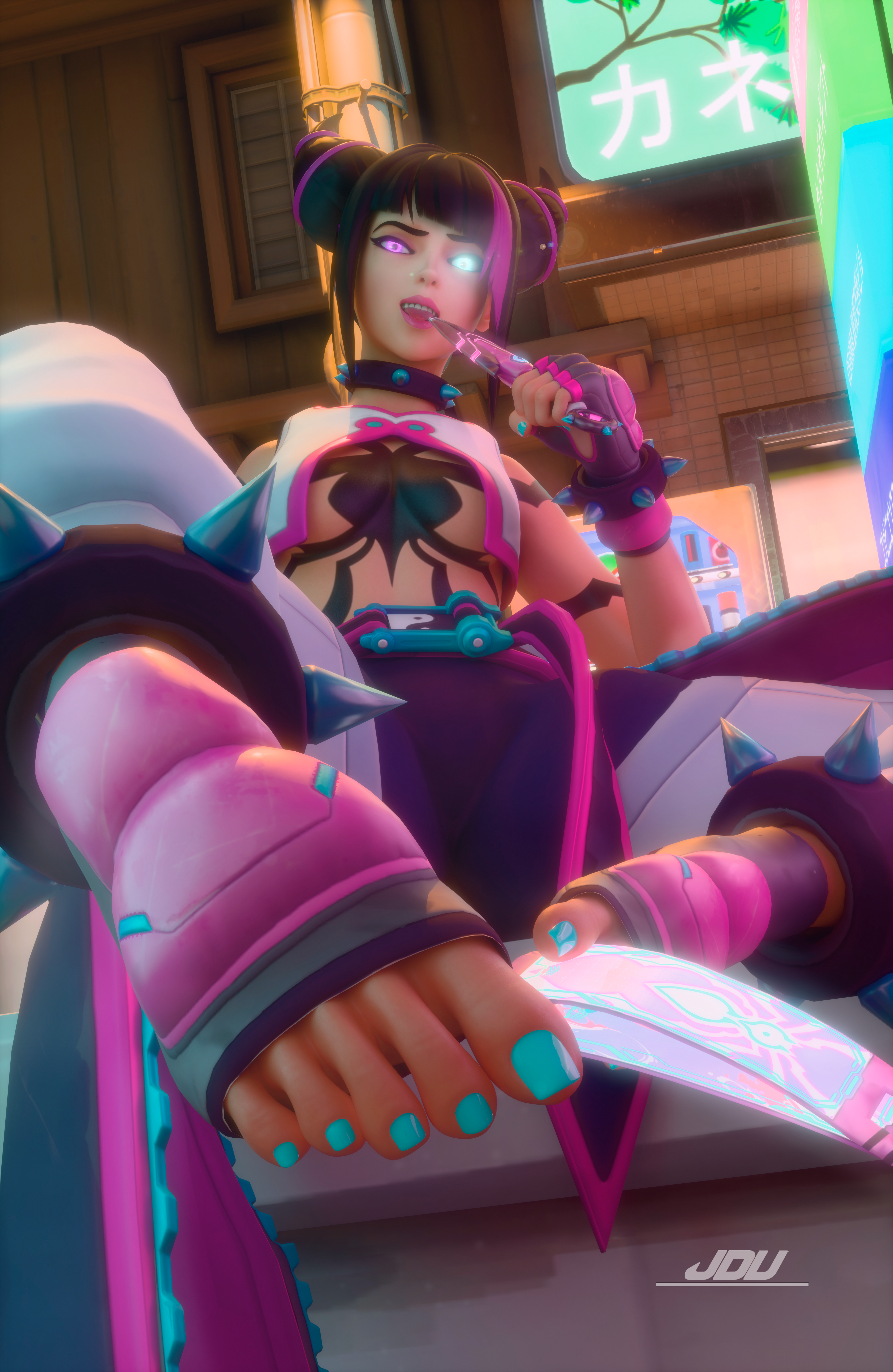 #fanart #digitalart #neon #anime #characterdesign #videogamefanart #mask #maskedgirl #streetfighter #juristreetfighter #gaggedwoman #juri_han_fanart