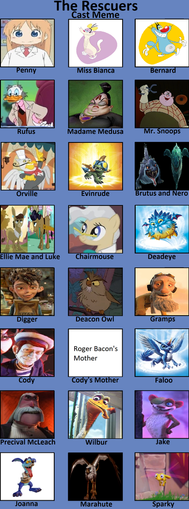 My recasted version of Disney's The Rescuers AND The Rescuers Down Under.Casting choices as shown: