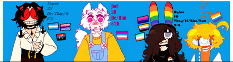 all my furbys as humans! well, not all... theres pike and red theyre gay and dating but i just couldnt draw them cuz they are literally klance ripheres some random info abt all of them cuz theyre all unique!