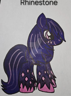"Diamond Dancer lives in Lilac Castle. He's handsome enough to have caught the eye of plenty of mares, but he only has eyes for Princess Crystal Crown. Unfortunately, he's too shy to confess his feelings to her, and she doesn't seem to have noticed his feelings. Despite his name, Diamond Dancer has four left hooves, and he's no less clumsy outside the ballroom."I came up with Diamond Dancer as a friend/potential love interest for Crystal Crown. My current backstory for him is that he met Crystal when they were teenagers. Crystal had snuck out of the castle to search for magic gemstones in a cave in the dark woods, but got lost, and was attacked by a bugbear. Diamond used his exceptional teleportation ability to distract the bugbear and lead it away from her. When the bugbear was gone, Diamond led Crystal back to the castle, where he was invited to stay as a reward for saving her.