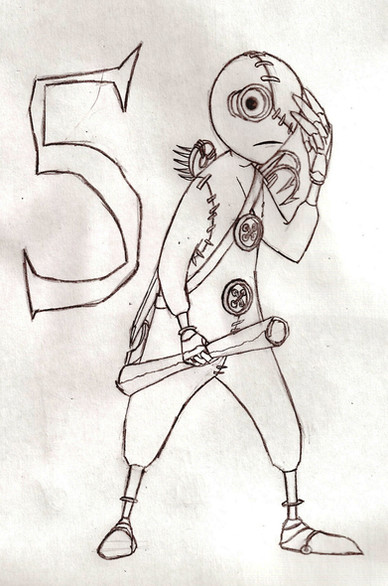 The count-up continues!Five is the first one I've drawn so far that doesn't have something like a hat on his head. . .