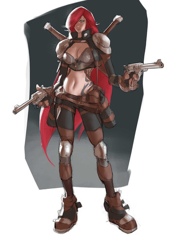She looks pretty cool! Loving the red scarf and hair! I also like your lighting for the skirt : )
