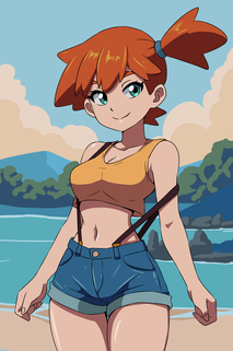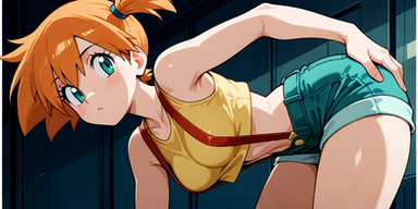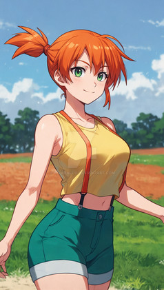 #anime #animegirl #pokemon #pokemontrainer #digitalart #hugebreasts #mistypokemon #suspenders #aigirl #aiart #orangehairgirl #aiartwork #aigeneratedart