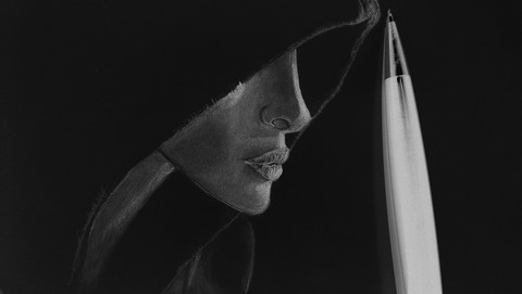#drawing #hat #fakenews #getvaccine #backlight #blackpaper #dessin #girlportrait #pencilart #portrait #whiteonblack #woman #womensday_2021