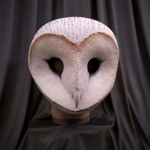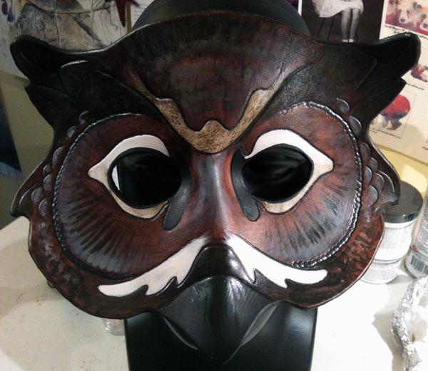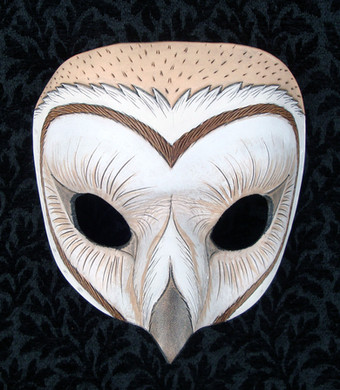 Paper mache owl mask~My school's campus has a pair of owls that like to meet on top of our eucalyptus trees. I've never seen them, but on quiet nights you can hear them having a low hooted conversation together ^^