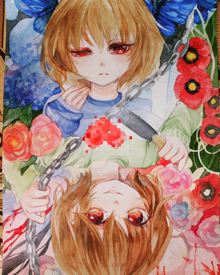 #pc #video #art #anime #chara #evil #fan #fanart #flowers #frisk #game #good #hate #love #manga #red #rpg #traditionalart #yellow #tobyfox #undertale