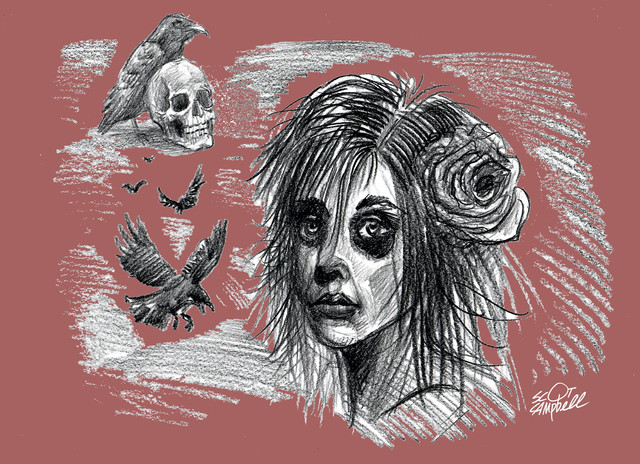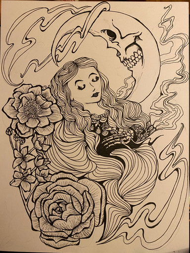 #death #drawing #eye #flowers #girl #gravestone #hands #macabre #morbid #plants #pretty #skeleton #skull #tragic #graveyard #micronpen #pencildrawing #roses