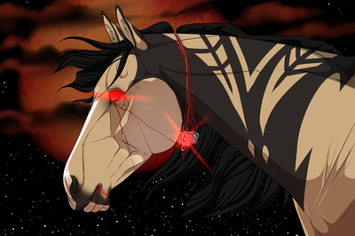 Personality: Big, powerful and mean, Underworld is the first stallion to truly give Caesar hope of leaving Sanctuary and forming his own herd of assholes Nordanners. His strengths lie in his size and battle capabilities, as he can, and will, take on just about anything. Problem is, he's intelligent, making him an even more dangerous opponent. With a short fuse and volcano-sized temper to match, it's best to steer clear of him. Very, very clear. Has no fondness for anyone or anything. Wait! Scratch that. He collects matches. And dynamite. Mares are disposable in his eyes and he has yet to meet one who impresses him in the slightest. He loves the adrenaline rush which comes with life-threatening events and battles, however, and has razor-sharp focus. Rather delights in tearing down others' happiness, possibly because he feels that if he can't have it, no one else should, either. Rather unfortunately, his voice is deep and seductive, completely belying the fact he'd totally bite your face off if it felt right.