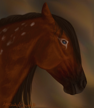 Personality: Gabriel is an old soul. Very reserved, he's not one for small-talk and generally doesn't stay close to the herd. He ranges out sometimes as far as 100 miles or more before returning back and not speaking of where he went off to. Unsurprisingly, he's closest with Mystere and stays as far away as possible from the higher strung mares (we're looking at you, Adianna, Heartbreaker!). Quite calming to be around--not unlike Cirianna--he is usually called on when something goes wrong and you just need a shoulder to cry on. Gabriel also tends to have a seemingly unending amount of patience, despite Adianna's incessant testing of it. However, he is not found of loud noises and will take off in any direction to get away from one. His size makes him somewhat intimidating but he's not fond of fighting and doesn't challenge anyone for dominance. He also has quite the sense of right and wrong which is the only time he'll be quick to speak up or voice an opinion. It's also one of the only things that will bring out the warrior in him. Ele has grown quite close to him and he has taken to staying closer to the group for her sake, as she is quite uncomfortable without his presence.