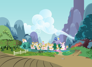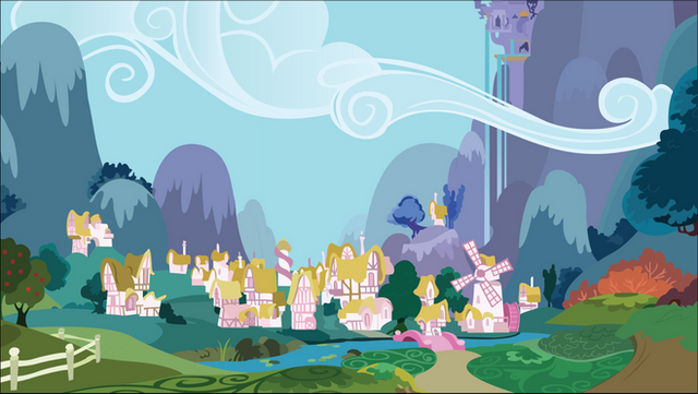 I was gonna say, that's pretty low in the sky for noon. But from that (the height of the sun during noon) we could determine the latitude from the equator (+/- the axial tilt of Equestria's planet, if it's the equinox of summer or winter (but it can't be winter since lack of snow) (23 degrees axial tilt for Earth, which equates to roughly 1300 miles of the planet's surface, and we can assume that planet has roughly Earth's size judging by it's surface gravity). But if it's spring or fall equinox, then axial tilt would make no difference on height of sun in sky at noon). [link]