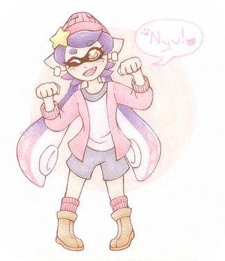 Companion piece to the pudding octo piece (www.deviantart.com/cheoaive/ar… ), this is another design based off of username screenshots! I'm really happy with how the juicebox and gradients turned out, as well as the magenta lineart. Using colored lineart for any future designs is something I'll have to keep in mind :0