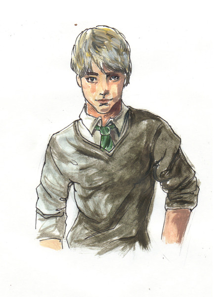 Tom Marvolo Riddle...A little backstory to the image to why I drew it. I'm fleshing out a new story to write and thought to bring out the idea of Tom Riddle III, the son of Bellatrix and Voldemort in the story. I took the image of Christian Coulso (adult) and Helena Bonham Carter and combined them both, giving a new person, with slightly thinner nose, thicker lips, hooded eyes, gray eye colors, and curly locks from Bellatrix and the pale flawless and handsome look of Tom Riddle. This took me less than an hour to sketch out and I really liked how it turned out. I'm more inclined to write the fan fiction and post it sometime soon. It'll be a Tomarry story.