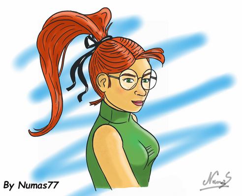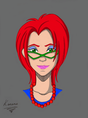 I think she is supposed to be a teacher or something. Not sure but ok, trying to achieve something with colors.