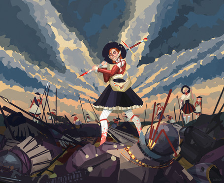 #armor #battle #character #digital #drawing #girl #hero #landscape