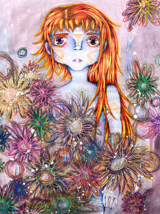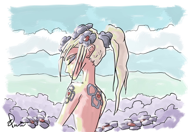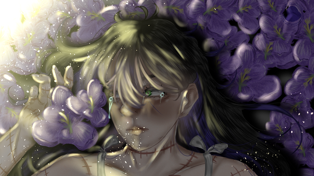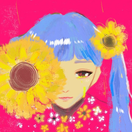 #bright #character #contrast #dark #digital #drawing #flowers #girl #yellow