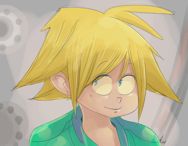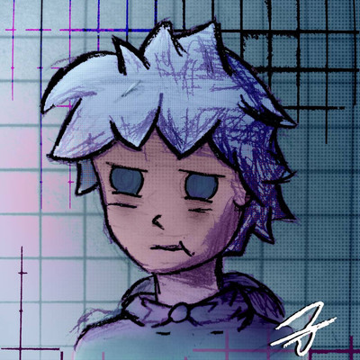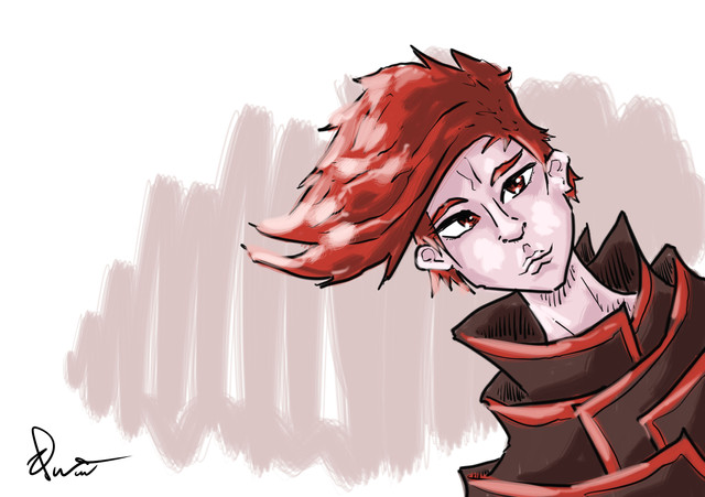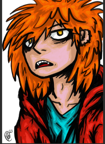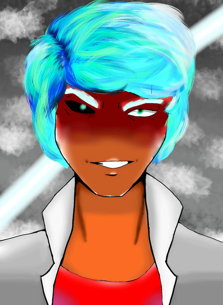 #blue #bright #character #digital #drawing #girl #jacket #krita #red #smile #splatter
