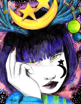 #character #cloud #digital #drawing #flower #flutter #girl #mark #rose #shine #stars #tattoo #universe #wind