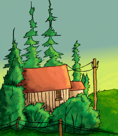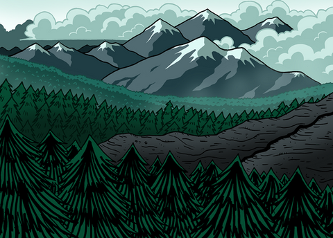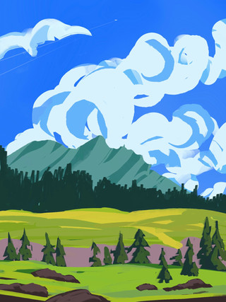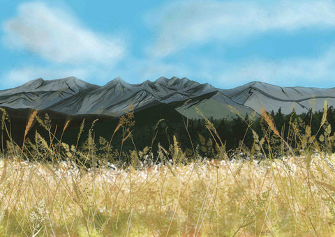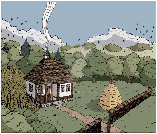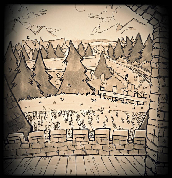 #architecture #building #character #citadel #city #clouds #digital #distance #drawing #fence #landscape #mountain #nature #tree