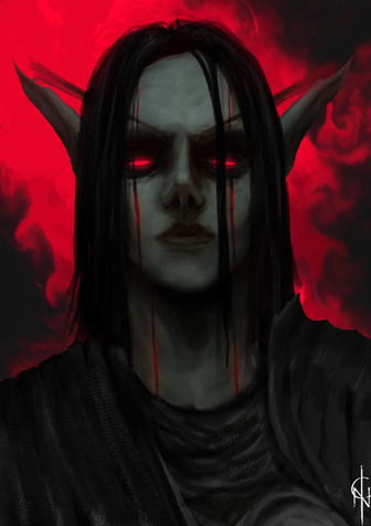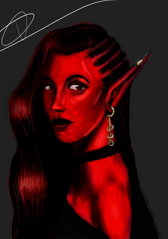 #character #dark #digital #drawing #elf #face #girl #red