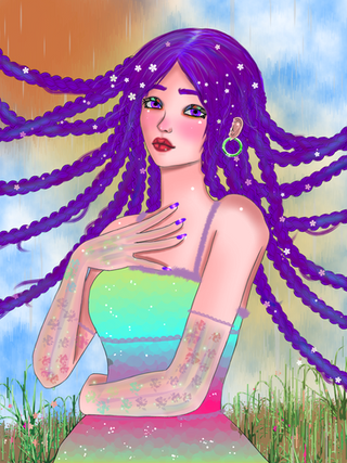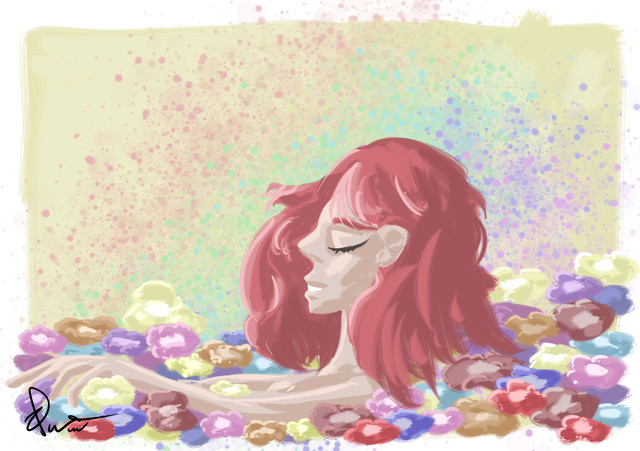 #character #digital #drawing #flower #girl #nude #tattoo