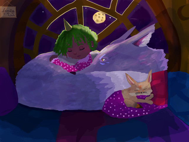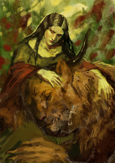 #bond #character #connection #digital #dog #drawing #fantasy #girl #happy #peace #sisterhood #whatever #wolf #cerbeeus