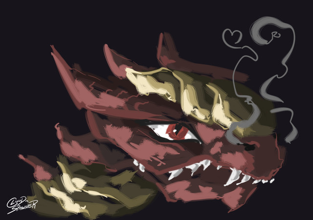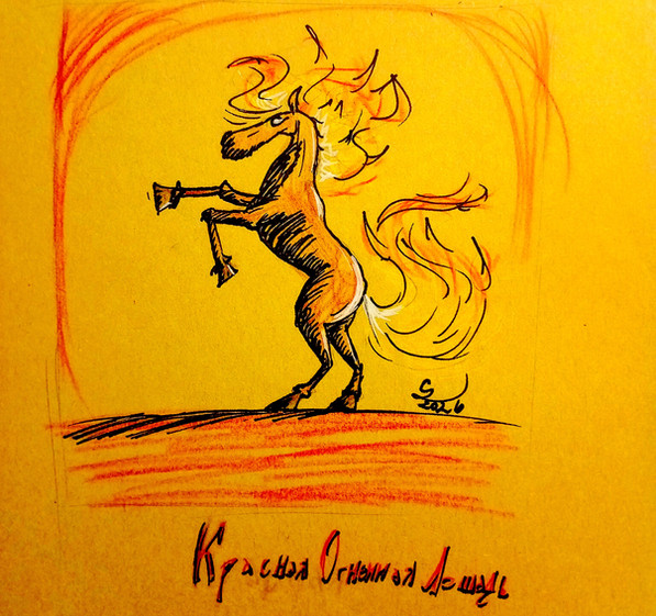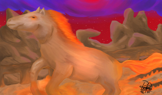#animal #character #digital #drawing #fabulous #horse #red #smoke
