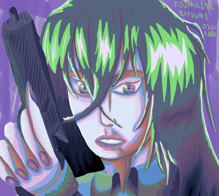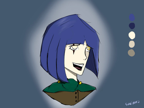 #blue #calm #character #digital #drawing #elf #girl #gray #jacket #krita #lips #quiet #serious #splatter #woman #art