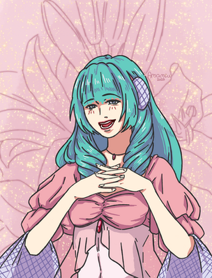 #beautiful #character #digital #drawing #elegant #flower #girl #green #illustration #innocent #krita #princess #simple #woman #art
