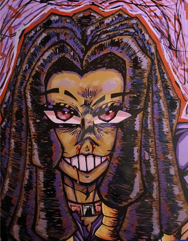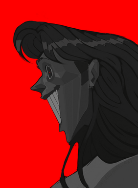 #blue #character #digital #drawing #evil #long #man #smile