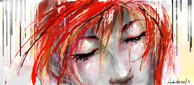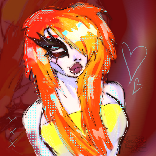 #character #digital #drawing #girl #long_hair #red #yellow