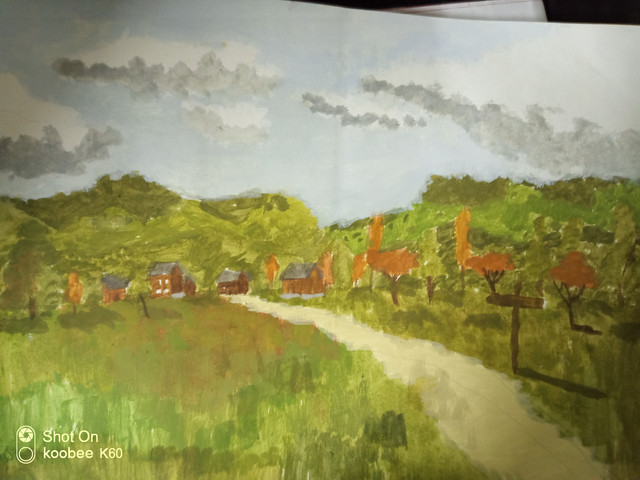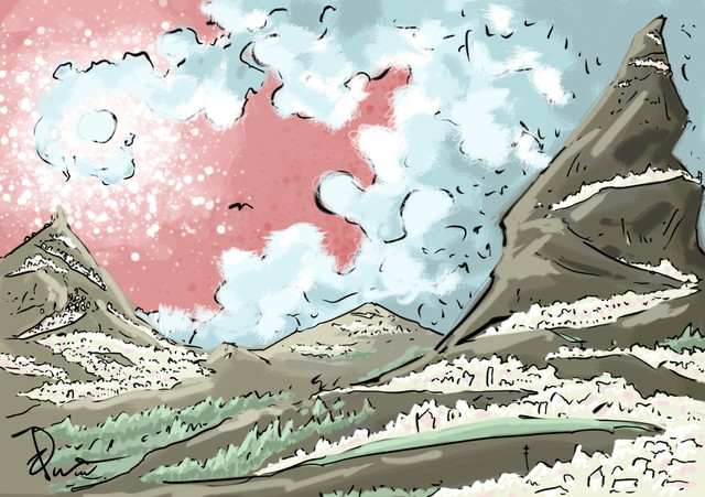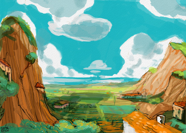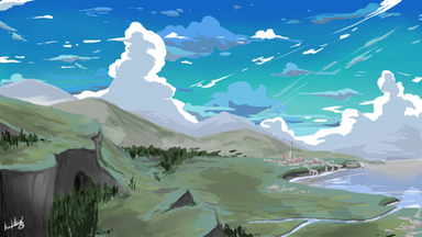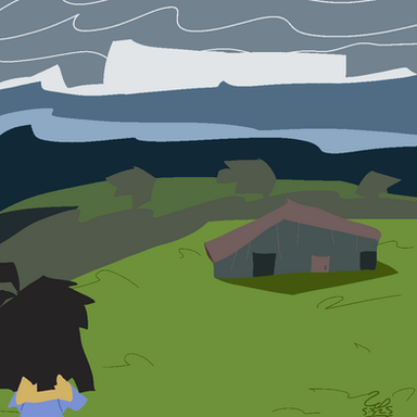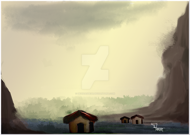 #cloud #digital #hill #landscape #mountain #shack #sky #village