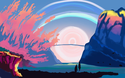 #digitalart #digitalpainting #sky #buildings #cloud #landscape #mountain #nature #settlement #town