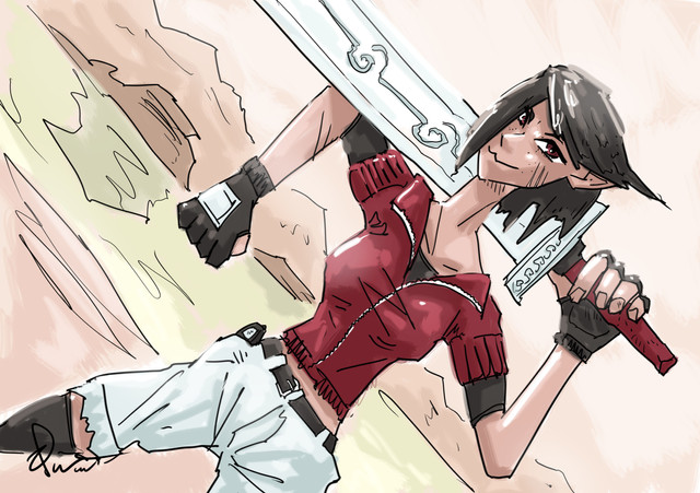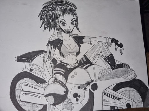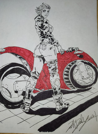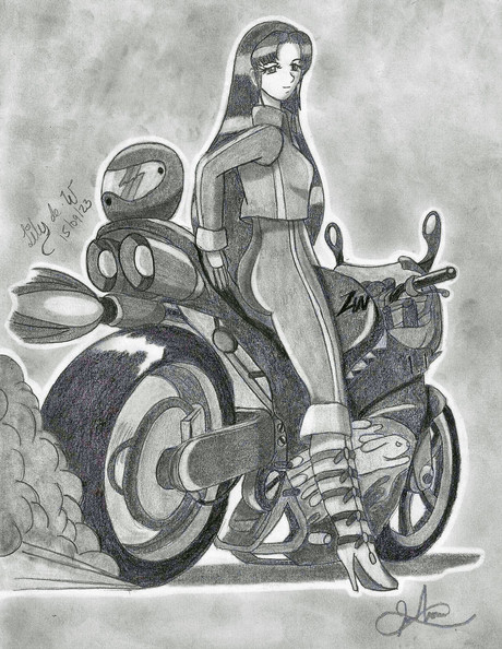 #biker #character #digital #drawing #girl #landscape #motorbike