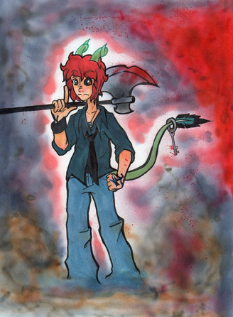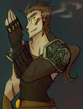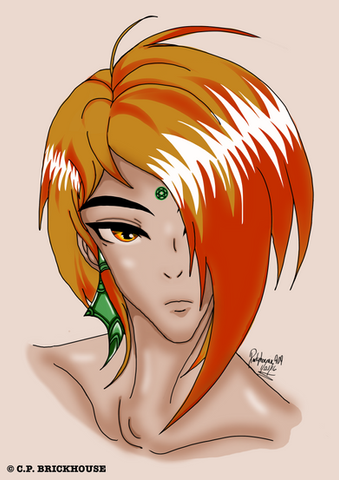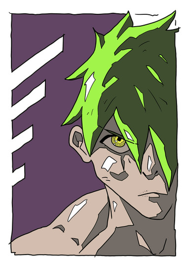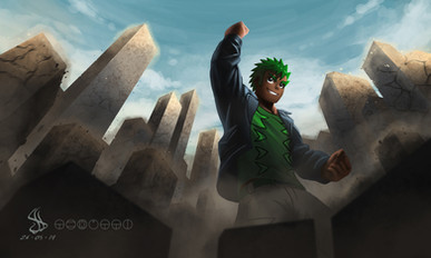 #digital #green #krita #man #orange #ruins #shirt #tattoo #unique