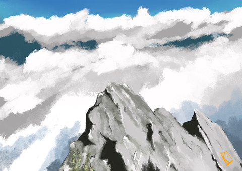 #clouds #digital #drawing #fall #landscape #lose #mountain #push #summit #tree #win