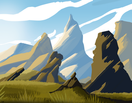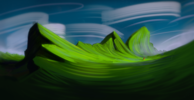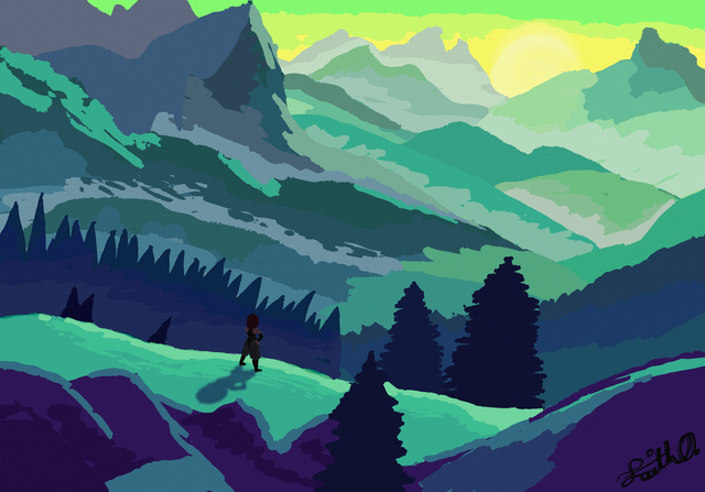 #character #cliff #clouds #color #digital #drawing #grass #hill #illustration #landscape #mountain