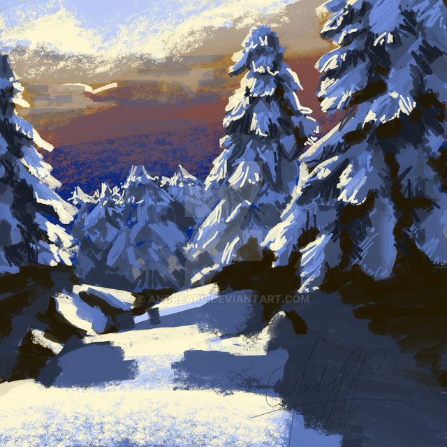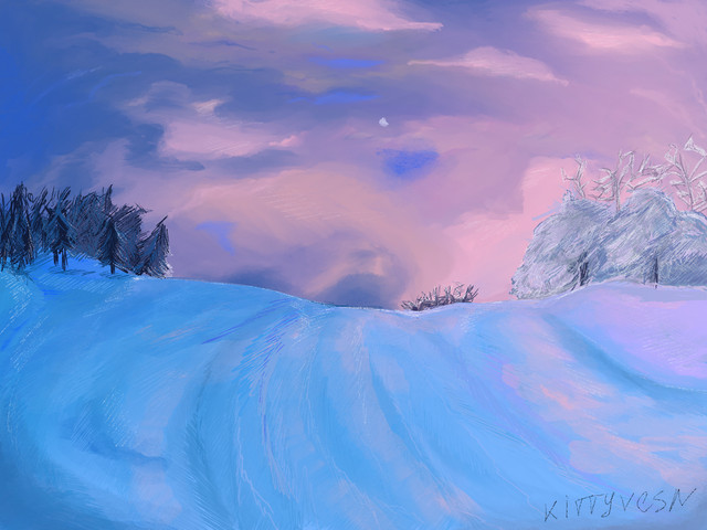 #dark #digital #evening #landscape #nature #painting #sky #winter