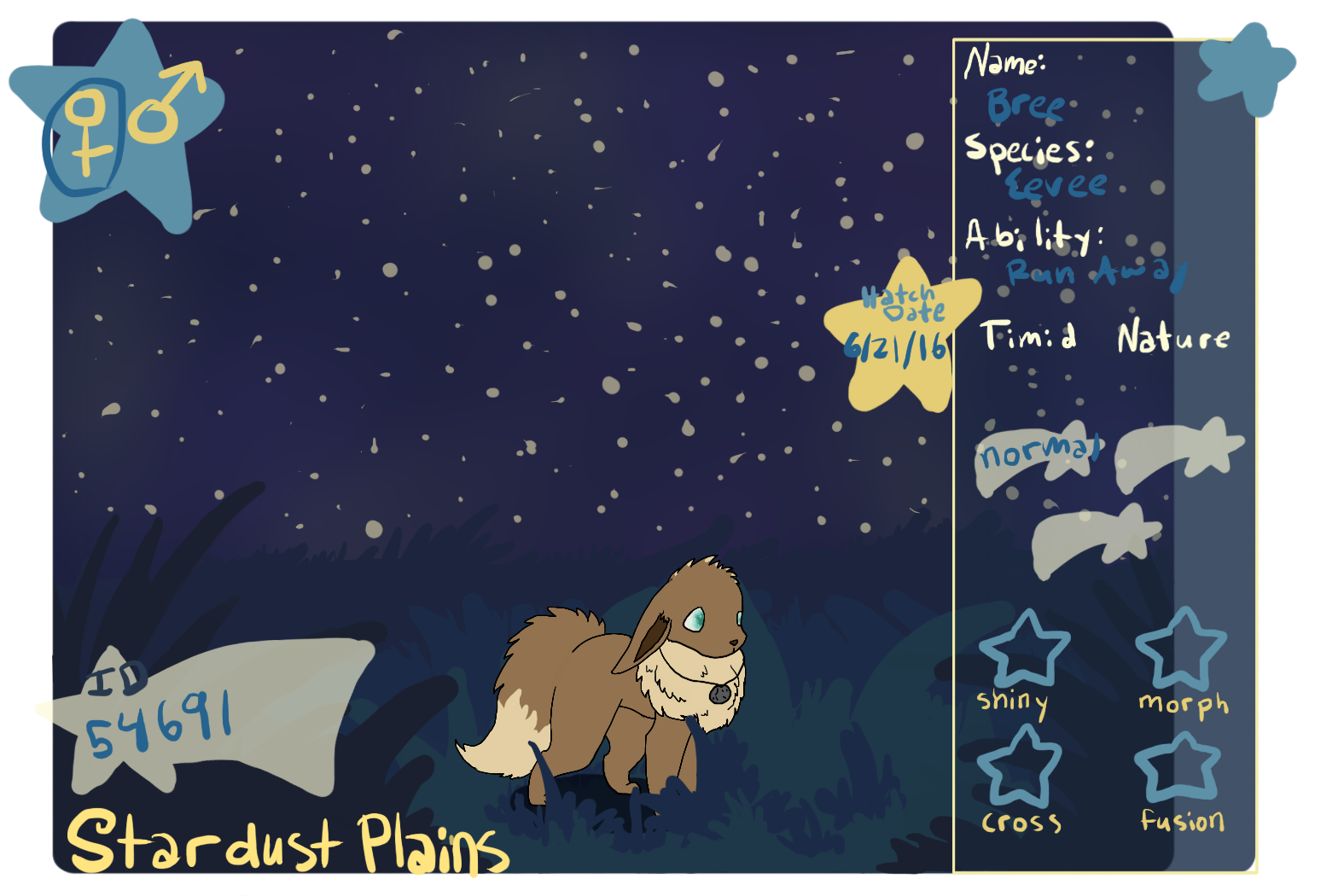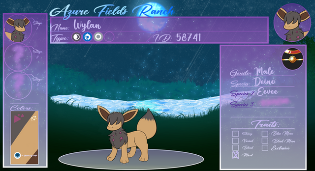Bree is Sam's mother and Enamyte's lifemate. She was my starter pokemon, but disappeared somehow long ago, when the ranch was still young. She was originally rolled as an Umbreon, but was devolved to be a basic pokemon. She has always been a little drawn to moonlight...