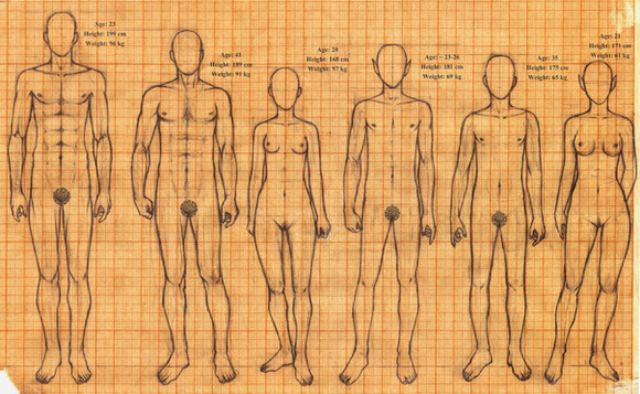 Here is a basic study about the subject, it represented the human figure have male and female in different stages of growth.