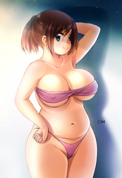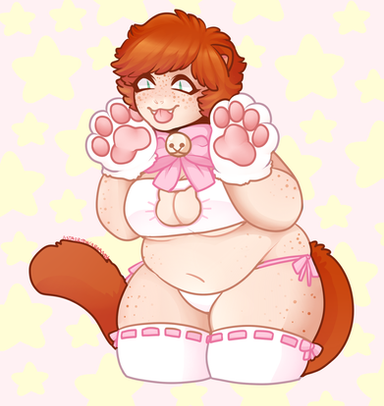 So adorable, lovely chubby girl and so sweet kitty lingerie (the design is so cool). She's ravishing... °w°
