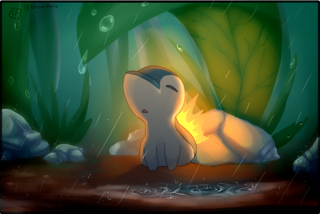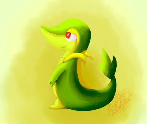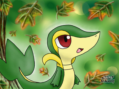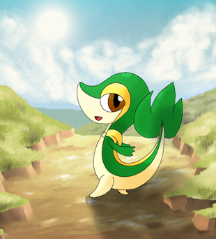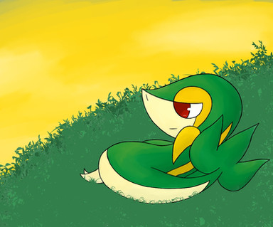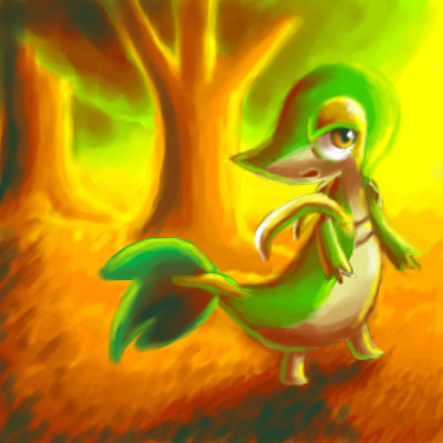 Snivy was a natural fit, I just thought that I'd give the first ever Pokemon I drew in digital another try. Sticking with the theme of contrasts, I thought of autumn, which was a season that I commonly associate with the color orange, which directly contrasts green, which is the dominant color on Snivy. I also thought that Snivy, being a Grass-type, wouldn't be familiar with the falling, wilted leaves which autumn brought along. Sunsets, which are also orange, makes it a rather good time, add that with my love of drawing skies and you can really see why I chose that. The leaf on the right actually contrasts the dark blue sky rather well, but that's just my opinion.