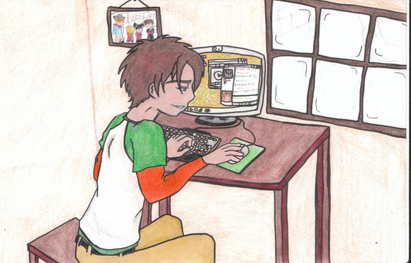 Kyahhh!! (manga scream) He's looking at PR0N!! XDDDD Whether it's by purpose or by accident....>DDD Yee now I wanna sit on the floor with my laptop....if it still worked. @___@