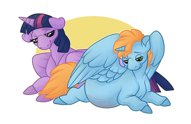 For Flashlight week day 2 - Close. Twilight Sparkle is close to giving birth, she is feeling uncomfortable and tired from the pregnancy. But Flash Sentry is always there to lend support. They know the exact due date because Starlight Glimmer cheated and peeked into the future.