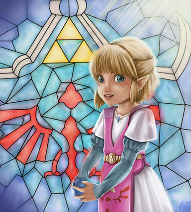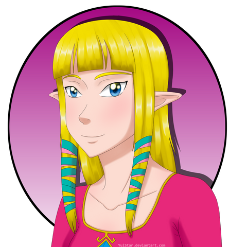 de hecho fue lo primero que pensé cuando la vi, pero por los colores, el vestido, la joya, y el estilo de cabello debe de ser zelda, no? o alguien que tiene que ver con zelda