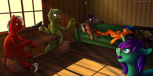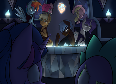 She meant to leave it only at a glance and a polite word or two, but Applejack couldn’t help but feel drawn down towards what Inkie indicated as Pinkie’s collection. It only held five items. A gem cluster with more colours than Applejack could name, a clear, almost transparent gem, a smooth rose gem, a dark round orb, and a curious, bright pink gem that demanded Applejack’s attention. The last and pinkest of the gemstones was unpolished and raw, given only a vague heart shape, but its every surface shone. The collection seemed deliberate in the extreme, precise compared even to Blinkie’s well-ordered items.